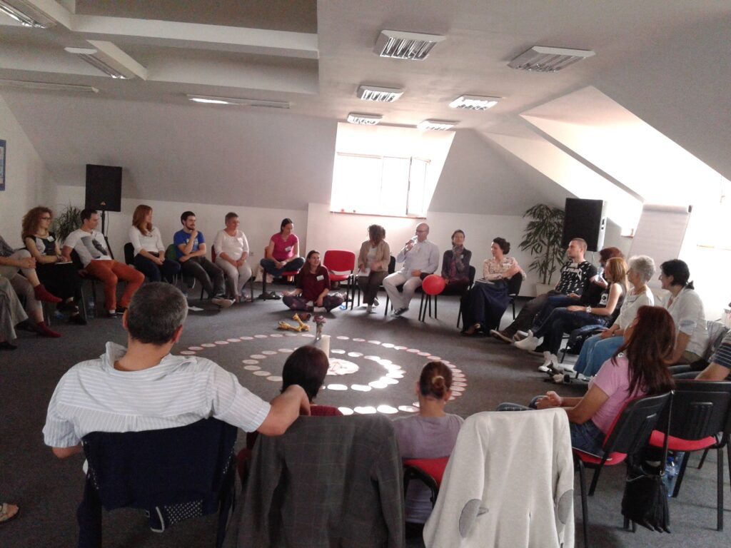 В далечната 2001 г., Емилия Илиева, Милена Ненкова и Ваня Иванова се срещат с метода Ненасилствена комуникация в рамките на проект за помирение на Балканите и вдъхновени от възможностите за приложението му в контекста на образованието и личностното развитие, преминават през поредица от обучения и инициират първите семинари в България. Темата за Ненасилствената комуникация присъства дълги години в програмата на фондация СЪЩНОСТ, която е домакин и организатор на основополагащи семинари и обучения с български и международни обучители.